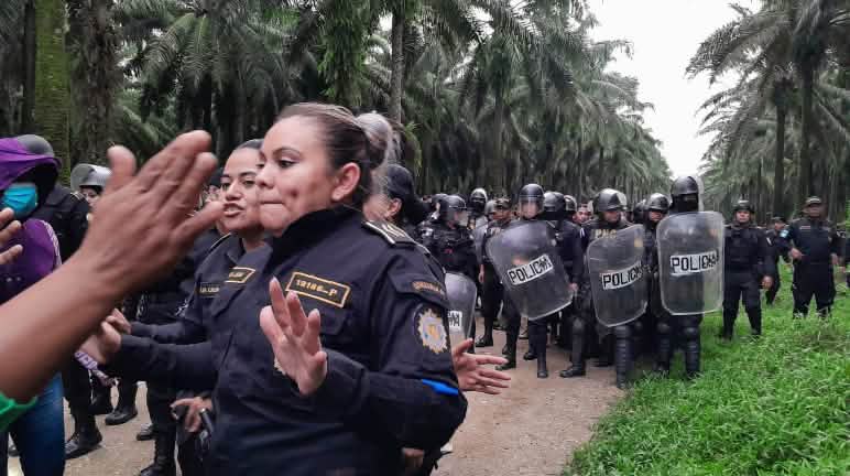 “Hak-hak dan keamanan masyarakat adat Maya Q'eqchi harus diperhatikan: Hentikan razia, penggusuran dan segala bentuk kekerasan.”Sejak berbulan-bulan satuan polisi dalam jumlah besar bergerak maju melintasi perkebunan sawit di tepi danau Izabal, sebelah timur laut Guatemala. Dengan gas air mata dan kekerasan bersenjata mereka melakukan penggusuran dan razia di komunitas Maya.