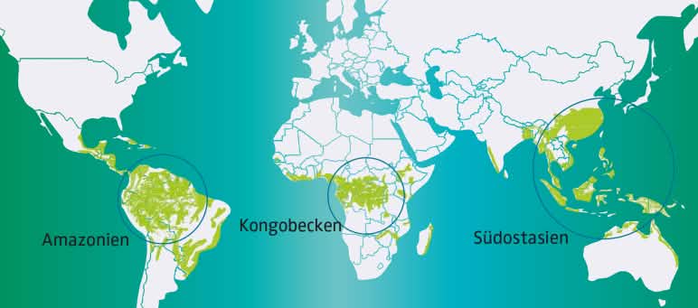 Penyelamatan hutan hujan yang tersisa adalah tugas global. Untuk itu Selamatkan Hutan Hujan mendukung mitranya di Amerika Selatan, Afrika dan Asia dalam aksi dan kampanye mereka. Setelah berpuluh-puluh tahun tumbuhlah jaringan kerja yang luar biasa yang melibatkan kelompok-kelompok berbasis lokal dengan publikasi di negara-negara industri.